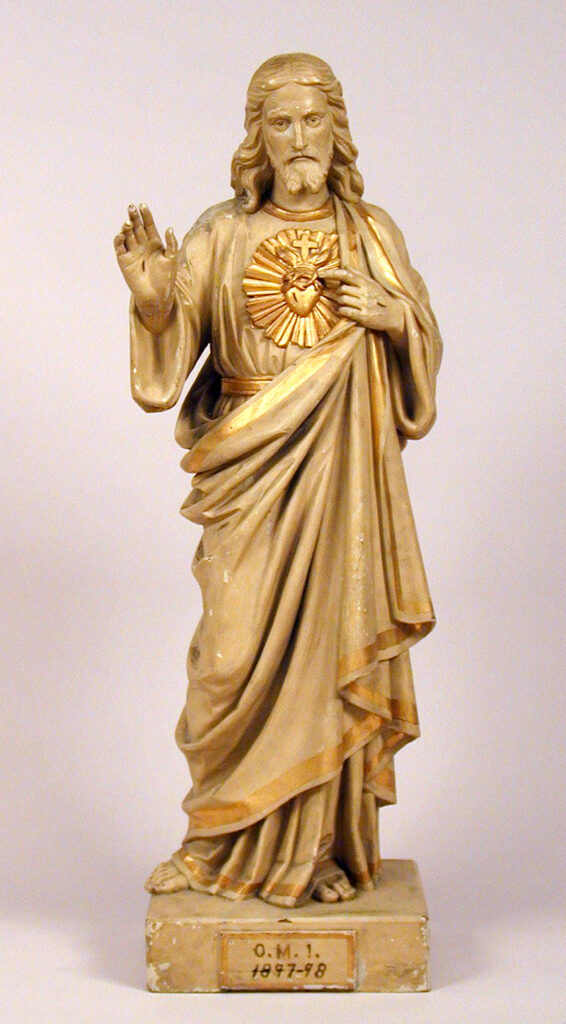 Cette statue en bois représente le Christ roi. L’idée du Christ Roi repose sur la notion de sa toute-puissance qui impose sa loi sur les hommes et la nature. L’œuvre a appartenu au Petit Séminaire de Québec avant d’être acquise par le musée de l’Institut des arts appliqués. Elle est exposée dans la salle 2 du musée entre 1963 et 1969.