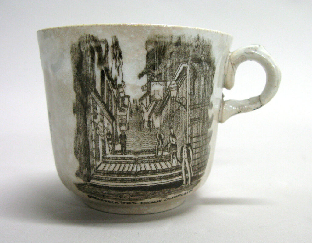 Francis T. Thomas, marchand de vaisselle et d'articles de cuisine établi dans la ville de Québec, fit affaire pendant le dernier quart du 19e siècle. C'est lui qui importa principalement les services décorés de vues de la ville de Québec, dont le modèle de départ fut les photographies de Louis-Prudent Vallée et de George William Ellisson qui furent mises en gravure par l'imprimeur-papetier Charles E. Holliwell. Le marchand F.T. Thomas commanda ces pièces à la Britannia Pottery du potier écossais Robert Cochran. La gravure était transférée sur la pièce grâce à un papier humide où le motif était imprimé à l'encre grasse. Le papier était déposé sur la pièce et retiré après une heure. Le dessin alors imprimé sur la pièce était scellé par la glaçure.